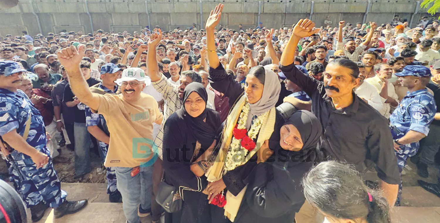 കാസര്കോട് നഗരസഭയിലെ ഖാസിലേന് വാര്ഡില് നിന്ന് മികച്ച ഭൂരിപക്ഷത്തോടെ വിജയിച്ച മുസ്ലിം ലീഗിലെ നൈമുന്നിസയെ ഉയര്ത്തിയെടുത്ത് ആഹ്ലാദപ്രകടനം നടത്തുന്ന പ്രവര്ത്തകര്