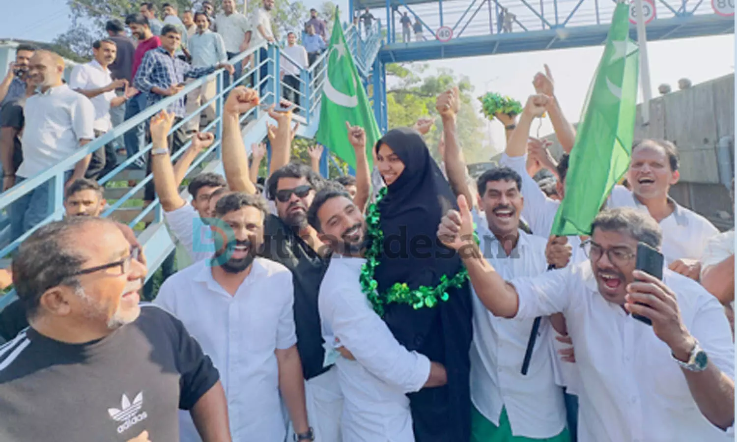 കാസര്കോട് നഗരസഭാ ഒന്നാം വാര്ഡില് നിന്ന് വിജയിച്ച തഷ്രീഫയെ ഉയര്ത്തി ആഹ്ലാദം പ്രകടിപ്പിക്കുന്ന ഭര്ത്താവ് ബഷീര്