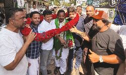ഫോര്ട്ട് റോഡ് ഫിഷ് മാര്ക്കറ്റ് വാര്ഡില് വിജയിച്ച ജാഫര് കമാലിനെയും നേതാക്കളെയും പ്രവര്ത്തകര് ഹാരമണിയിക്കുന്നു